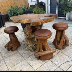 Artisan Solid Root Wood Table Set w/Epoxy Inlays + 4 Sculpted Stools (One -of-a-Kind)$1,900Miami, FL