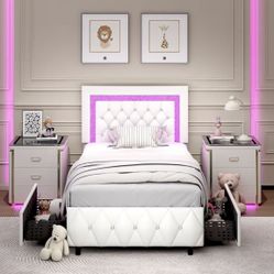 Bed Frame Twin Size with Multicolored light Led🔥OFFER TIME LIMITED 🔥$450Miami Gardens, FL