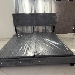 NEW BED FRAME KING SIZE GRAY WIHT MATTRESS AND BOX OR WITHOUT $499Fort Lauderdale, FL