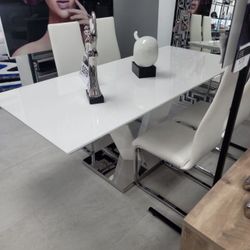 White Dining Table Set 5 Pieces White Chairs 76"x35" Extendable $799Fort Lauderdale, FL