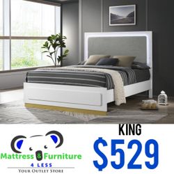 Olivia King Panel Bed With LED Headboard Pearl White$1,049Halndle Bch, FL