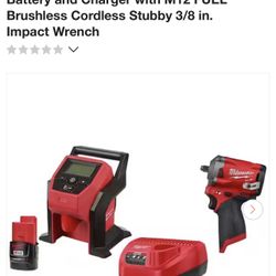 M12 Cordless Inflator w/2.0 Ah Battery and Charger with M12 FUEL Brushless Cordless Stubby 3/8 in. Impact Wrench$270Miami, FL