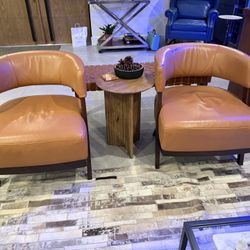 2 Genuine Leather Tan/Brown accent Chairs $475Miami, FL
