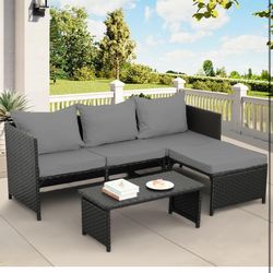 Valita 3-Piece Outdoor PE Rattan Furniture Set Patio Black Wicker Conversation Loveseat Sofa Sectional Couch Gray Cushion$160Miami, FL