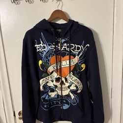 NWT Sz M Ed Hardy Love Kills Slowly Skull Mens Zip Up Hoodie Berry Blue Heart$45Miami, FL