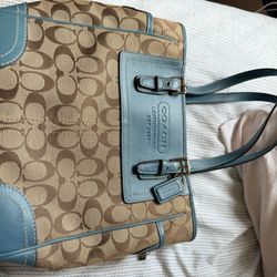 Coach Logo Brown Blue Tote Bag with Leather Trim and Zip Closure$50Miami, FL