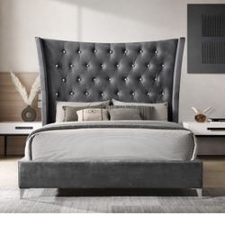 QUEEN BED DARK GRAY E.King Fabric Wing Back Tufted Platform Bed Headboard$595Miami, FL