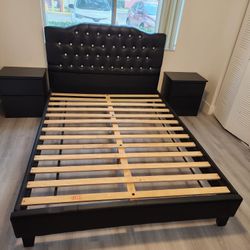 QUEEN Bed Frame Luxury BED Frame Leather Upholstery Platform Bed With Nightstands $450Miami Beach, FL