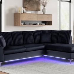 Black Corduroy Sectional With LED Lights$10Miami, FL