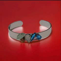 5" Silver Tone Cuff Bracelet Blue Green Pink Clear GemStones A53$10Princeton, FL