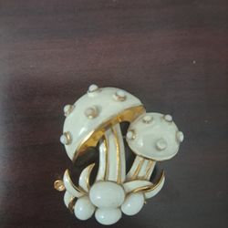 Crown Trifari Brooch Mushroom Pin Milk White Enamel Glass Jewelry Vintage Designer Gift$165Hialeah, FL