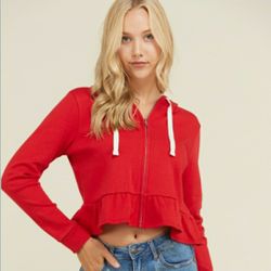#10115-2 🔥💥Ruffle Hem Hoodie Ziput Fleece Jacket,red,S/M/L(before making your payment ask me if I have your size available). $15Miami, FL