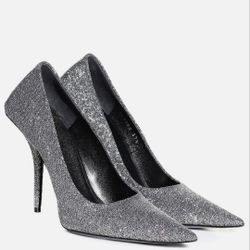 BALENCIAGA SQUARE KNIFE PUMPS SILVER SUEDE LOGO$500Miami, FL