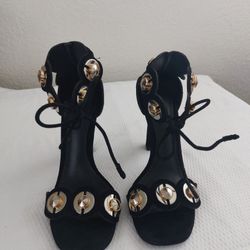 Mercedes Castillo Black Gold Stud Lace Up Heels . Size 6.5$100Miami, FL