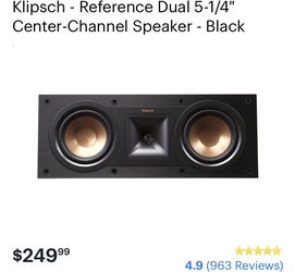 Klipsch reference dual 5-1/4" center - channel speaker- black$185Miami, FL