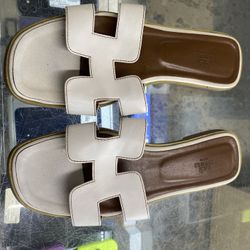 HERMES Leather Oran Sandals Size 41 EU White Pre Owned Authentic Woman Size 10.5$220Miami, FL