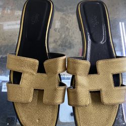 HERMES Leather Oran Sandals Size 41 EU Gold Pre Owned Authentic Woman Size 10.5$220Miami, FL