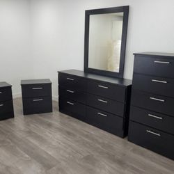 ⚫️DRESSER WITH MIRROR, CHEST AND TWO NIGHTSTANDS ⚪️ CÓMODA CON ESPEJO, GAVETERO Y DOS MESITAS DE NOCHE ⚫️$580Homestead, FL