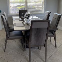 Glass Dining Table w/ Solid Wood Base + 5 Chairs – Priced to Sell$250Medley, FL