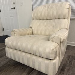 Cream-colored fabric upholstered recliner chair with a vertical striped pattern. $30Jacksonville, FL
