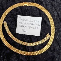 Vintage Gold Tone Mech Flat Snake Choker Necklace With Bracelet $125Jacksonville, FL