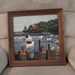 Vintage framed Kay Dee handprints 100% pure linen Harbor scene print$25Orange Park, FL