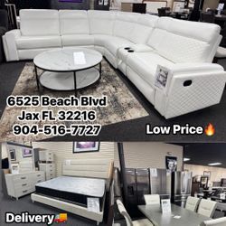 New White Leather Manual Recliner Sectional With Cupholder & Storage. Delivery & Set Up Available $1,799Jacksonville, FL