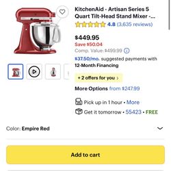 KitchenAid Mixer—Empire Red$225Jacksonville, FL