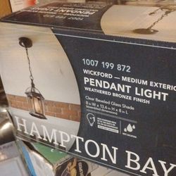 Hampton Bay Outdoor Light Wickford 13.6 in Weathered Bronze Pendant Outdoor Hanging Light Clear Beveled Glass$40Macclenny, FL