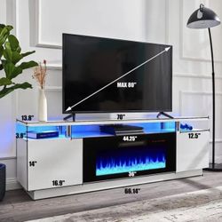Modern TV Stand with Electric Fireplace & LED Lights – Fits Up to 80” TVs, High Gloss White Entertainment Center $250Jacksonville, FL