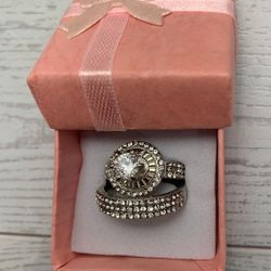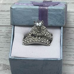 New Size 8 Silver Tone Halo Bridal Ring Set Pave Crystal Engagement Style Costume Jewelry$10Port St. Lucie, FL