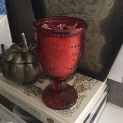 Handmade Red Chalice Glass Candle With Rose Petals$12Palm Beach Shores, FL