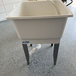 White Utility Sink Laundry Tub With Pull Out Chrome Faucet, Sprayer Spout, Heavy Duty Slop Sinks For Washing Room, Basement, Garage or Shop, Large Fre$80West Palm Beach, FL