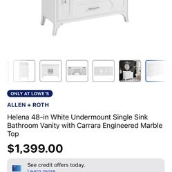 Helena 48-in White Undermount Single Sink Bathroom Vanity with Carrara Engineered Marble Top$550West Palm Beach, FL