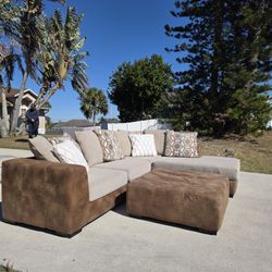 Beige/Brown 2pc Sectional & Ottoman - FREE DELIVERY $425Port St. Lucie, FL