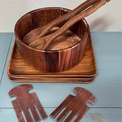 Vintage Wooden Salad Bowl Utensils Plate $10 for All $10Port St. Lucie, FL