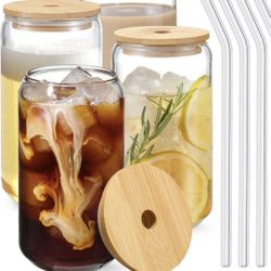 Drinking Glasses with Bamboo Lids and Glass Straw 3pcs$10Wellington, FL