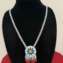 Hand-Beaded Turquoise Medallion Fringe Necklace$42Riviera Beach, FL