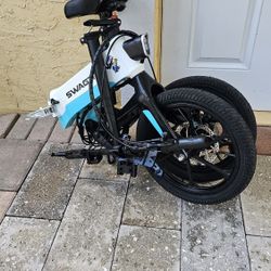 Swagtron Swagcycle EB-7 Elite Plus Folding Electric Bike with Removable Battery, Orange/Black, 16" Wheels, 7-Speed
