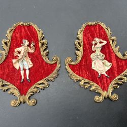 Pair of Vintage Italian Wall Plaques Romantic Couple Red Velvet Frame Empire Art 14x17in$50West Palm Beach, FL