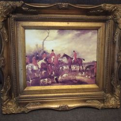 British English Fox Hunt Art Print On Tile Ornately Framed Dogs Horses$20Lake Worth, FL