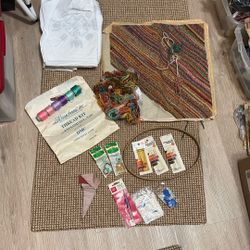 Needlepoint/embroidery Supplies- Partially Completed Piece With Thread For Completing , Thread Kit, Thimbles, Needles, Punch Needle Threading Tool, Et$14West Palm Beach, FL