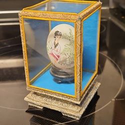 Vintage Chinese Art Hand Painted Egg Shell Woman With Fan Encased In Box 3"x5"$20Riviera Beach, FL