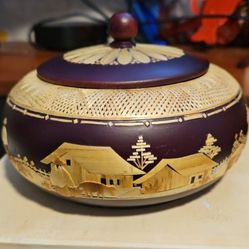 Handmade Straw Marquetry Wooden Trinket Bowl W/ Lid Village Scenery 6” Round$25Riviera Beach, FL