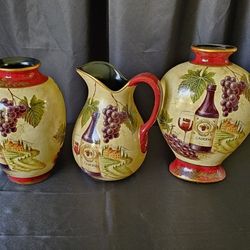 Vintage 3-Piece Hand Painted Italian Ceramic Pitcher & 2 Matching Vases - Decor$150Lake Worth, FL