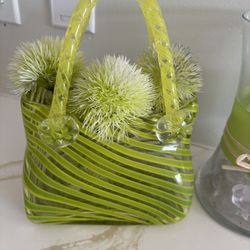 VINTAGE HAND BLOWN ART GLASS MURANO STYLE GLASS PURSE VASE+MATCHING VASE$100Ocean Ridge, FL