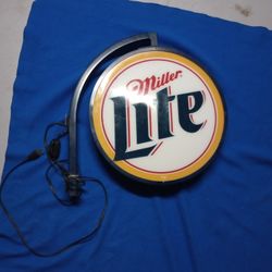Vintage Miller Lite Beer Lighted Light Up Double Sided Round Sign Lamp With Bracket Mancave Rec Game Room Pub Bar Lounge Garage Hanging Advertising $200Lake Worth, FL