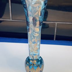 Vintage Italian Venetian Glass Vase In Teal Color With Silver Overlay $30West Palm Beach, FL