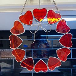 Beautiful Stained Glass Red Hearts/bow Large Circular Sun Catcher $30West Palm Beach, FL