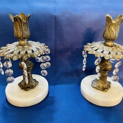 Antique Brass/marble Hanging Crystal Candleholders $80West Palm Beach, FL